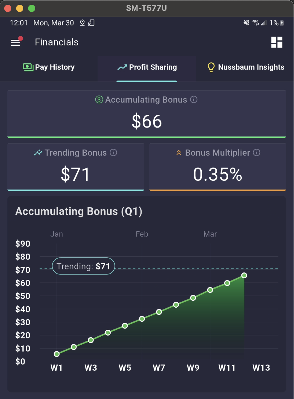 This tab will also show your “trending” bonus. This is the total quarterly bonus for which you are on pace, assuming your earnings pace is steady through the end of the quarter.